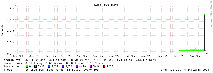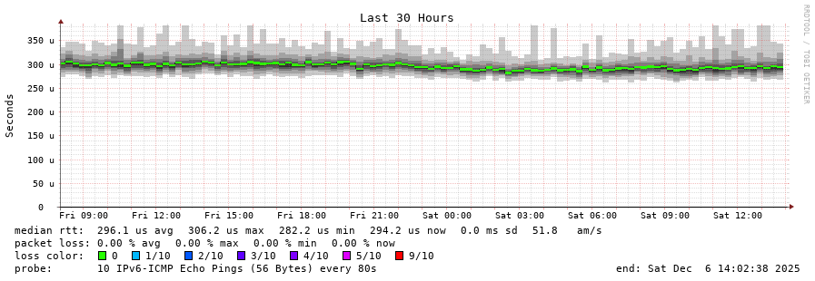 traceroute to 2606:4700:4700::1111 (2606:4700:4700::1111), 30 hops max, 80 byte packets - Generated at 2025-12-06 14:00:01