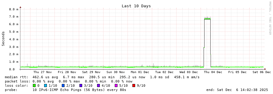 6 > one.one.one.one (2606:4700:4700::1111) [AS13335] 0.285ms 0.288ms 0.289ms