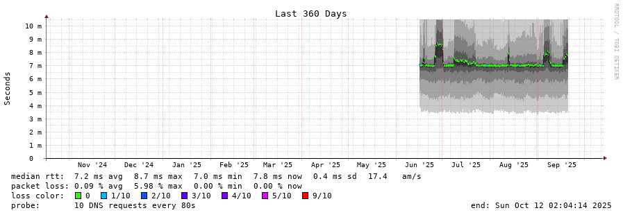 traceroute to 2620:fe::fe (2620:fe::fe), 30 hops max, 80 byte packets - Generated at 2025-10-12 01:15:01