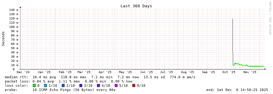 traceroute to 173.246.100.11 (173.246.100.11), 30 hops max, 60 byte packets - Generated at 2025-12-06 13:45:01
