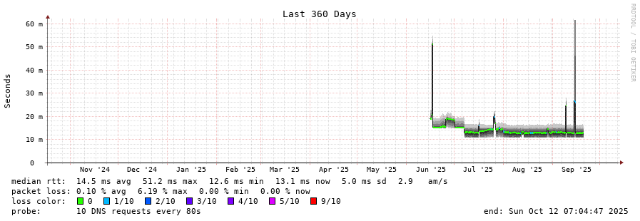 traceroute to 2001:500:12::d0d (2001:500:12::d0d), 30 hops max, 80 byte packets - Generated at 2025-10-12 07:00:01
