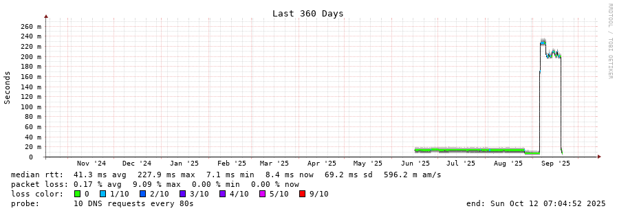 traceroute to 2001:7fe::53 (2001:7fe::53), 30 hops max, 80 byte packets - Generated at 2025-10-12 07:00:01