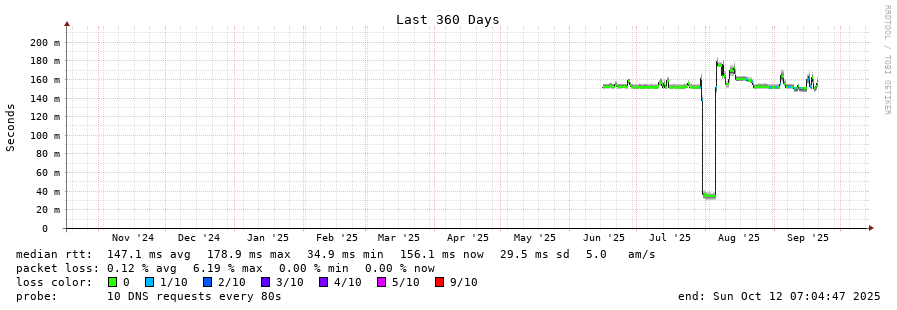 traceroute to 2001:7fd::1 (2001:7fd::1), 30 hops max, 80 byte packets - Generated at 2025-10-12 06:45:01