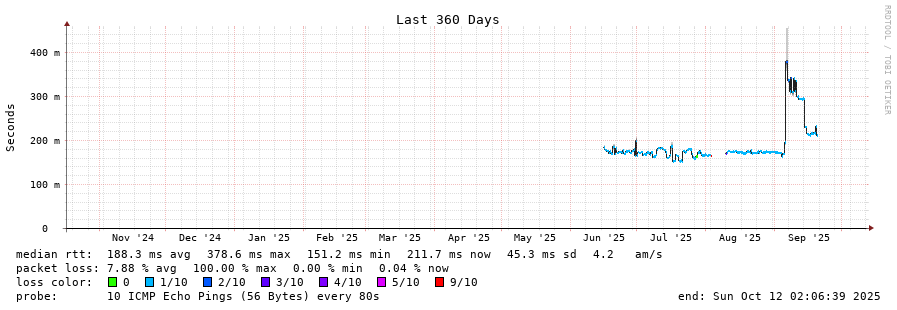 traceroute to 43.252.94.1 (43.252.94.1), 30 hops max, 60 byte packets - Generated at 2025-10-12 01:30:01