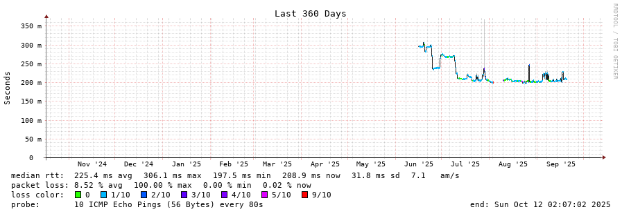 13 > 10ge0-8.core1.mnl1.he.net (184.104.188.51) [AS6939] 266.283ms 265.914ms 266.008ms