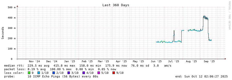 12 > as6939.equinix-miami.core2.mia1.he.net (198.32.242.176) [*] 144.888ms 106.786ms 106.848ms