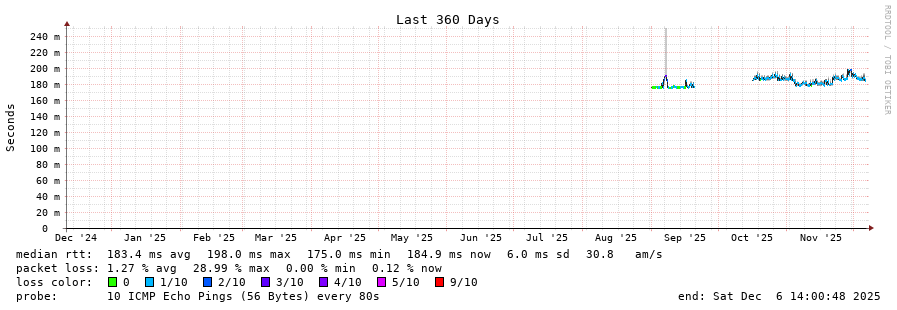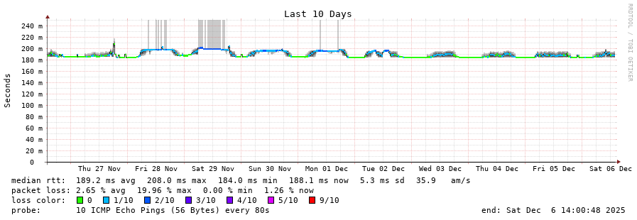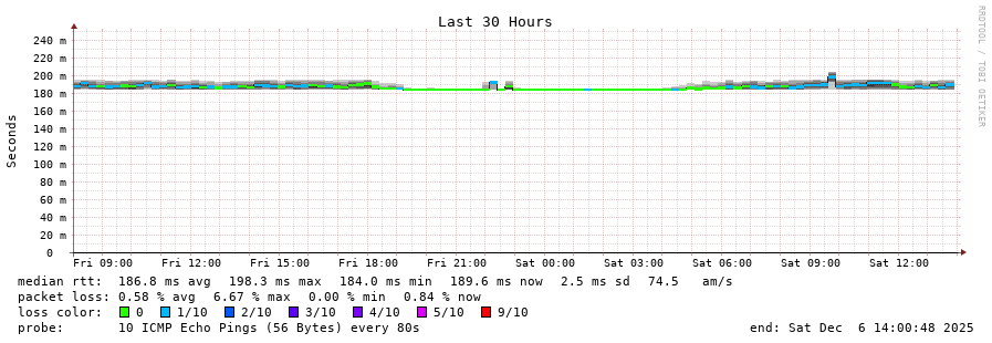 traceroute to 203.154.249.2 (203.154.249.2), 30 hops max, 60 byte packets - Generated at 2025-12-06 13:45:01