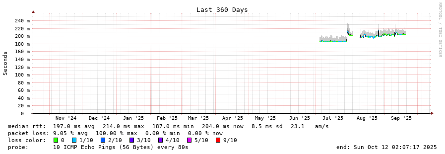 14 > 154.67.0.28 (154.67.0.28) [AS21351] 201.763ms 201.590ms 201.657ms