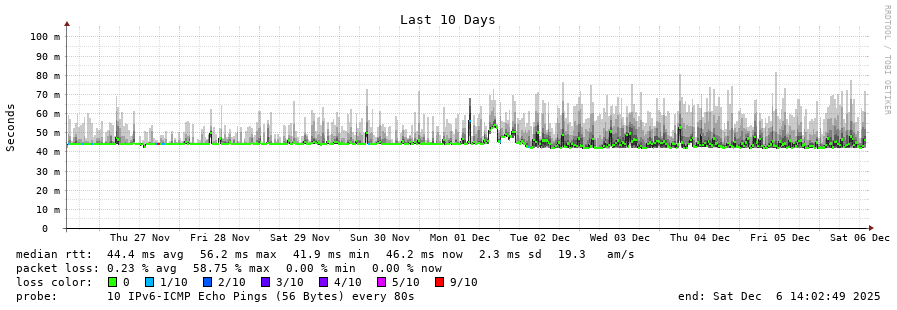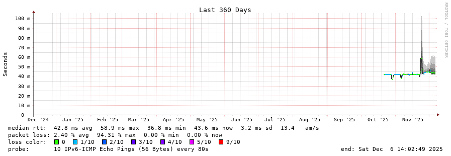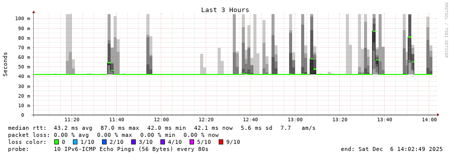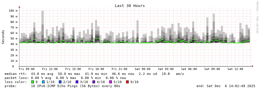traceroute to 2a0c:9a40:8610:e3f::1 (2a0c:9a40:8610:e3f::1), 30 hops max, 80 byte packets - Generated at 2025-12-06 13:45:01