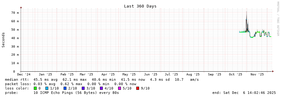 traceroute to 185.45.15.70 (185.45.15.70), 30 hops max, 60 byte packets - Generated at 2025-12-06 13:45:01