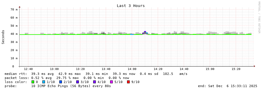 10 > de-cix.v4.telecomit.ro (80.81.195.242) [*] 38.442ms 38.505ms 38.274ms