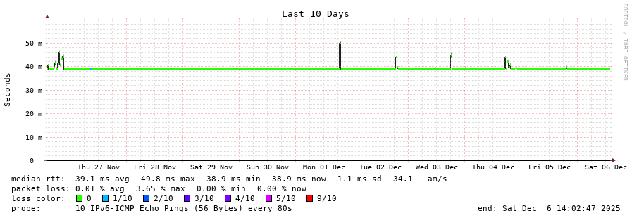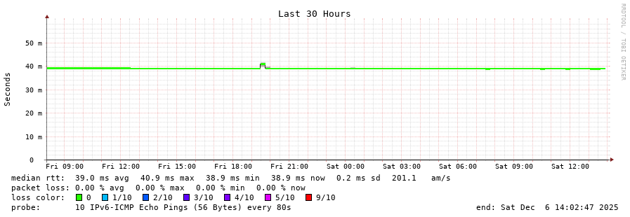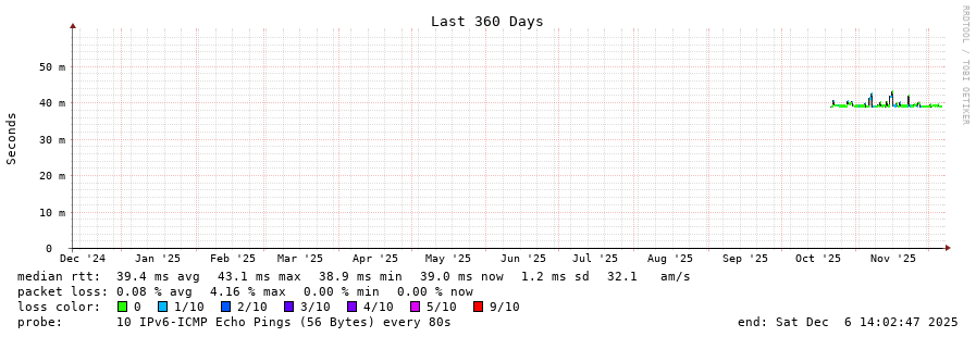 traceroute to 2a03:8f84::f1b6:9702:29c:9062 (2a03:8f84::f1b6:9702:29c:9062), 30 hops max, 80 byte packets - Generated at 2025-12-06 13:45:01