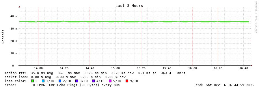 15 > 2001:67c:10:1102::11 (2001:67c:10:1102::11) [AS60149] 35.762ms 35.772ms 35.757ms
