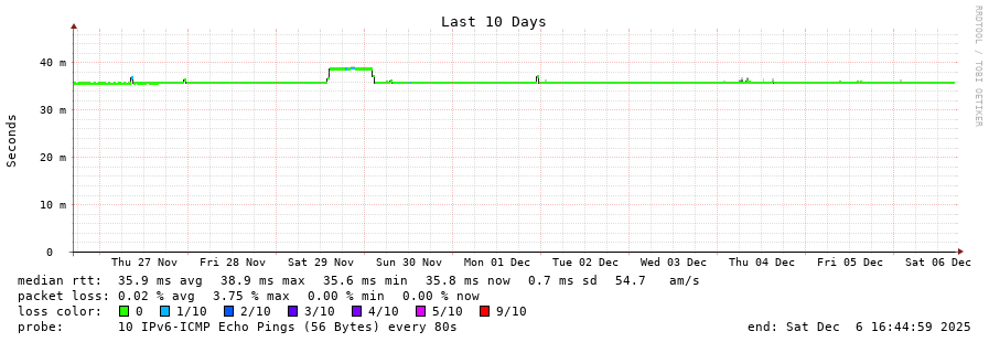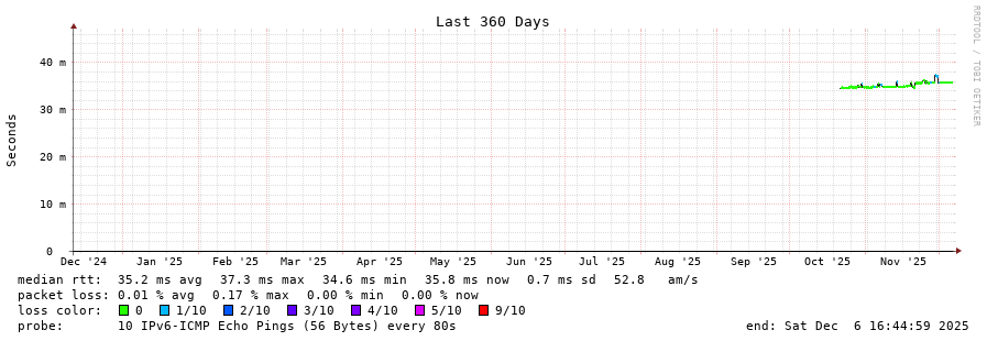 traceroute to 2001:67c:10:1102::11 (2001:67c:10:1102::11), 30 hops max, 80 byte packets - Generated at 2025-12-06 13:45:01