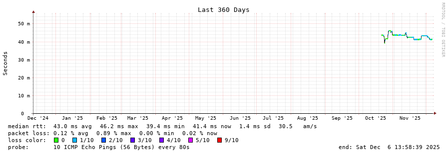 traceroute to 185.143.195.29 (185.143.195.29), 30 hops max, 60 byte packets - Generated at 2025-12-06 13:45:01