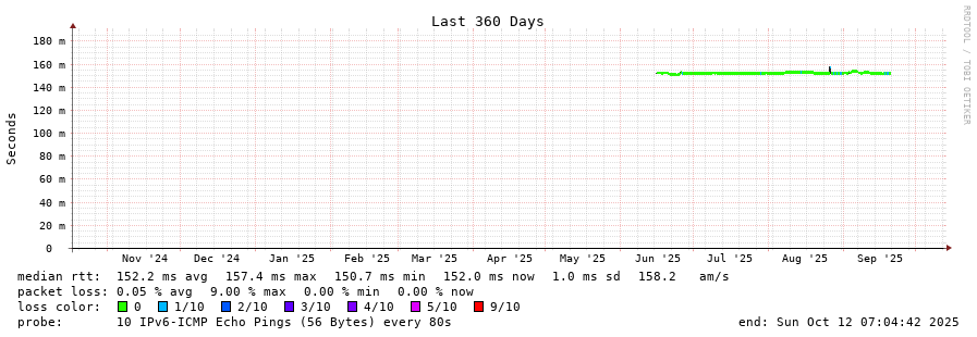 traceroute to 2402:1f00:8002:100::f72 (2402:1f00:8002:100::f72), 30 hops max, 80 byte packets - Generated at 2025-10-12 07:00:01