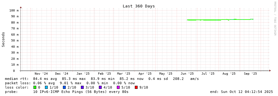 11 > 2604:2dc0:0:100::1:cf (2604:2dc0:0:100::1:cf) [AS16276] 85.029ms 85.092ms 84.954ms