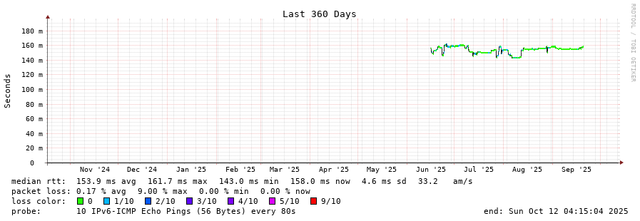 traceroute to 2604:2dc0:305::2:0:2b0 (2604:2dc0:305::2:0:2b0), 30 hops max, 80 byte packets - Generated at 2025-10-12 04:00:01