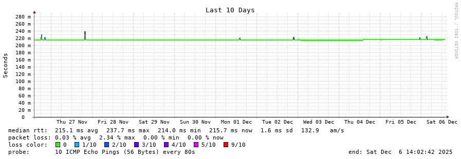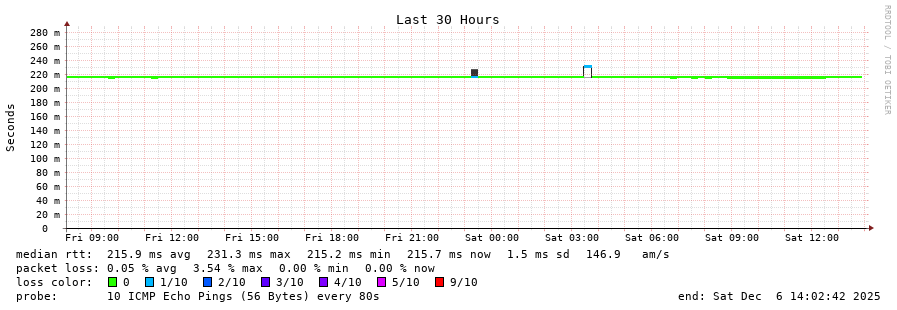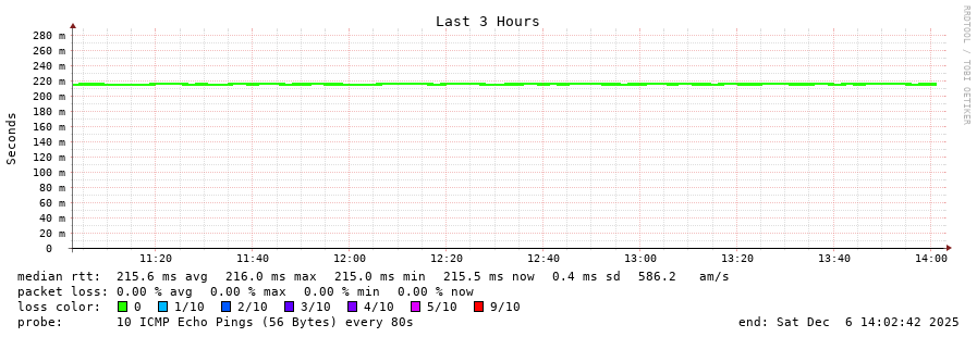 12 > 185.70.203.57 (185.70.203.57) [AS6762] 215.269ms 215.257ms 215.271ms