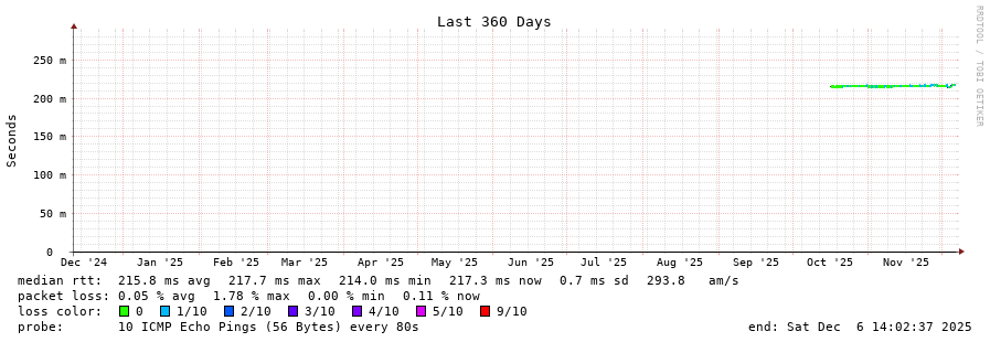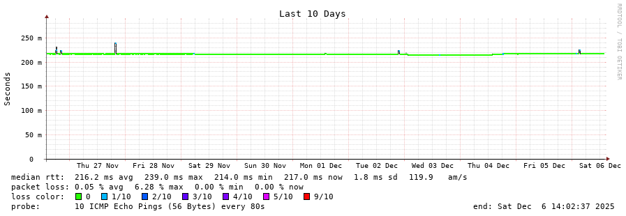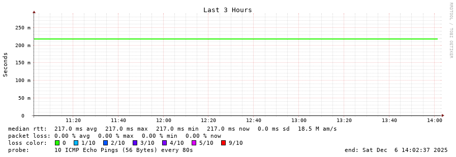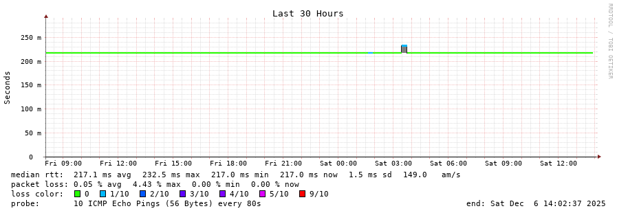 12 > 185.70.203.57 (185.70.203.57) [AS6762] 216.002ms 215.969ms 215.852ms