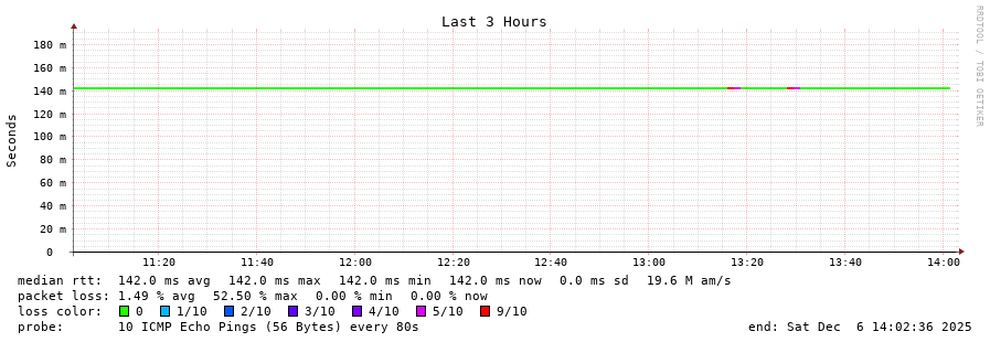 13 > host-190-6-50-26.NET-UNO.NET (190.6.50.26) [AS11562] 142.329ms 142.247ms 142.293ms