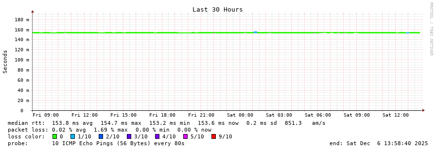traceroute to 190.153.122.3 (190.153.122.3), 30 hops max, 60 byte packets - Generated at 2025-12-06 13:45:01