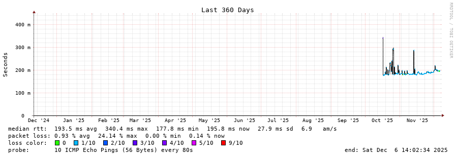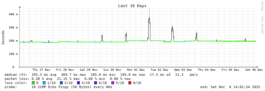 11 > 213.144.185.45 (213.144.185.45) [AS6762] 169.701ms 169.572ms 169.635ms