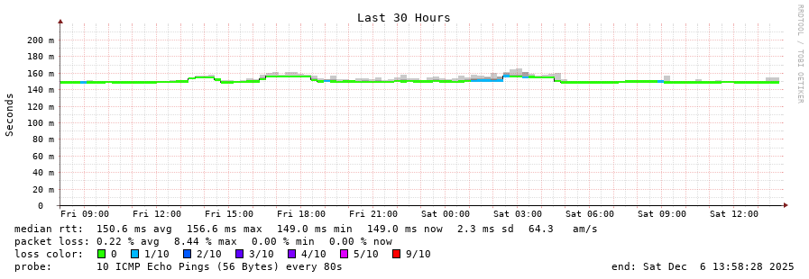 14 > 200.25.12.210 (200.25.12.210) [AS7195] 148.369ms 147.612ms 147.615ms