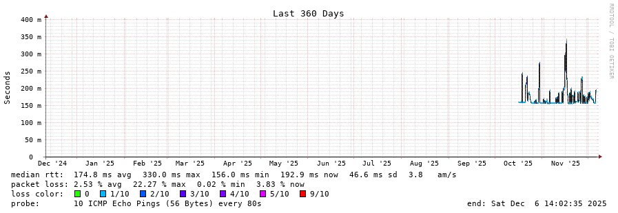 11 > 179.51.112.214 (179.51.112.214) [AS263210] 156.960ms 156.751ms 156.593ms