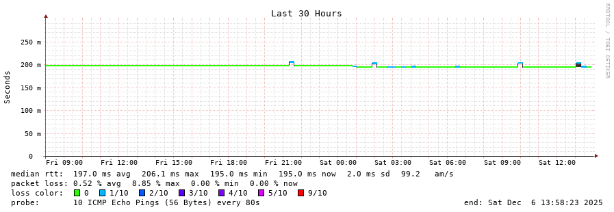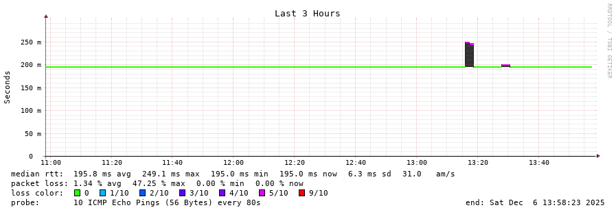 12 > 190.9.80.245 (190.9.80.245) [AS271591] 194.667ms 194.672ms 194.657ms