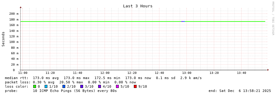 12 > 181.233.24.213 (181.233.24.213) [AS271835] 172.656ms 172.647ms 172.639ms