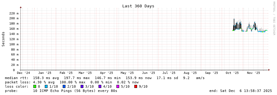 traceroute to 190.121.146.24 (190.121.146.24), 30 hops max, 60 byte packets - Generated at 2025-12-06 13:45:01
