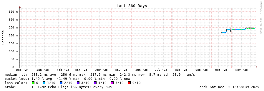 15 > globenet.rio.br.as52320.net (200.16.69.45) [AS52320] 220.010ms 219.849ms 220.316ms