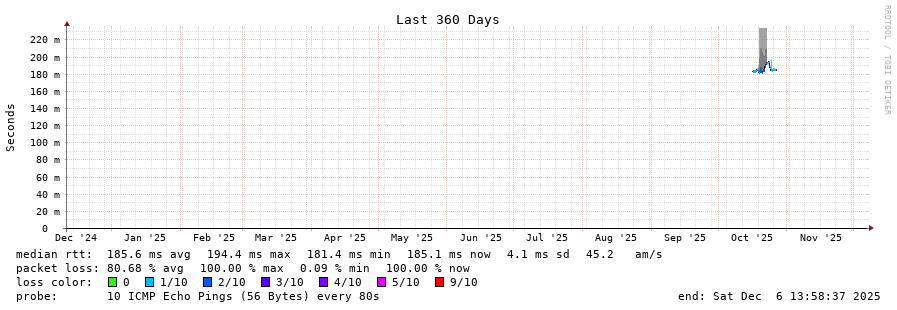 traceroute to 191.53.8.250 (191.53.8.250), 30 hops max, 60 byte packets - Generated at 2025-12-06 13:45:01