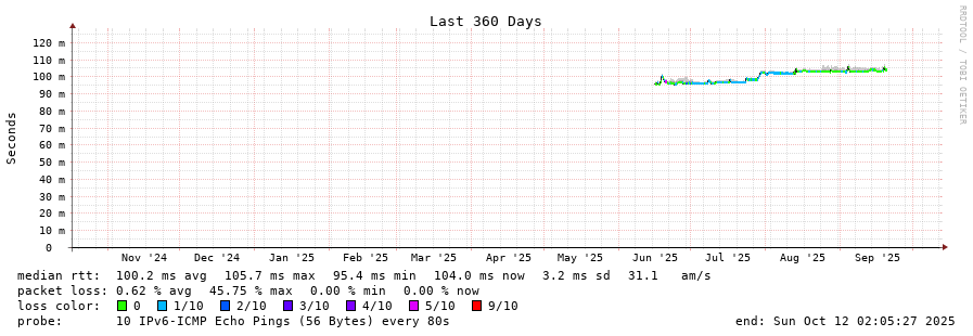 traceroute to 2602:feda:b8e:10::1 (2602:feda:b8e:10::1), 30 hops max, 80 byte packets - Generated at 2025-10-12 01:15:01
